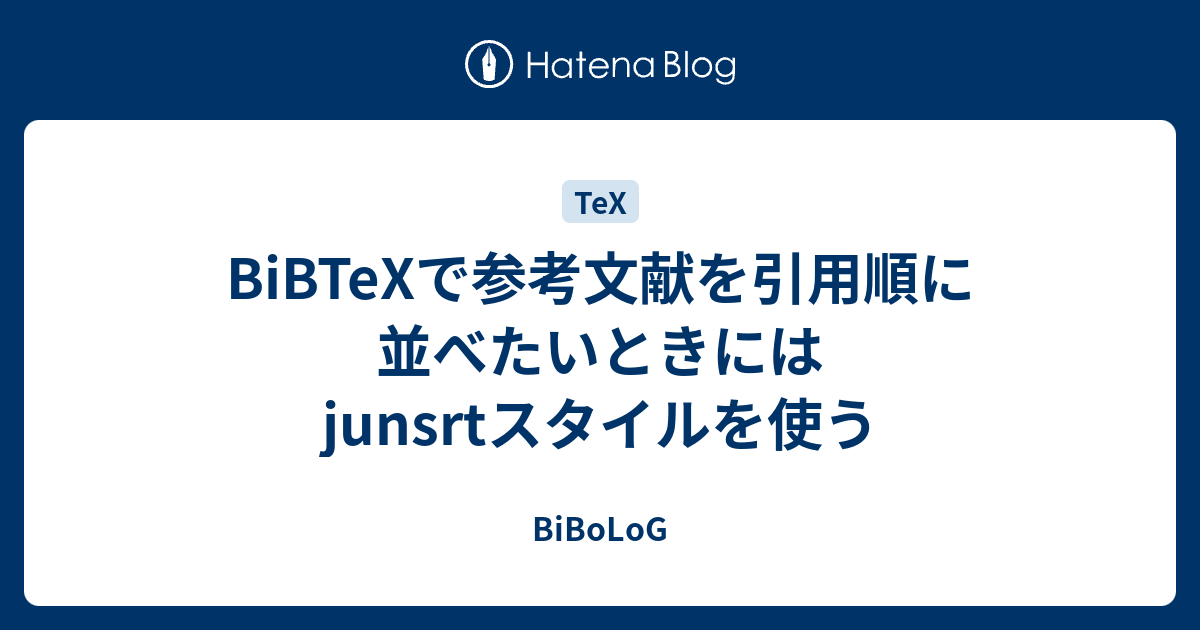 Bibtexで参考文献を引用順に並べたいときにはjunsrtスタイルを使う Bibolog