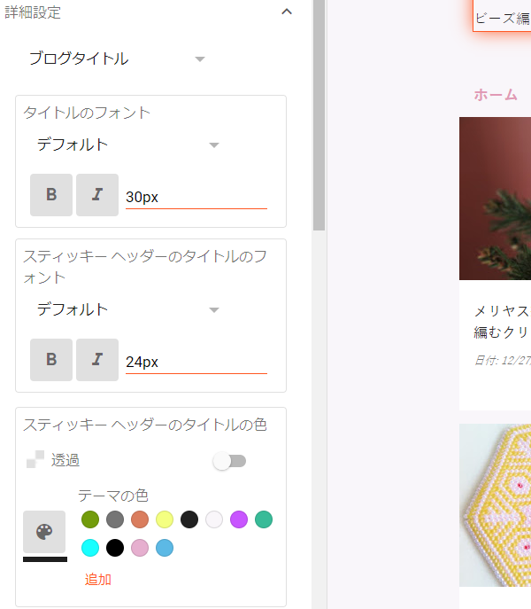 Blogger ヘッダー 文字 サイズ