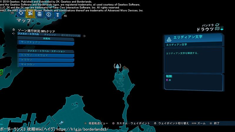 ボーダーランズ3 エリディアン文字の場所 30 30 Map Youtube