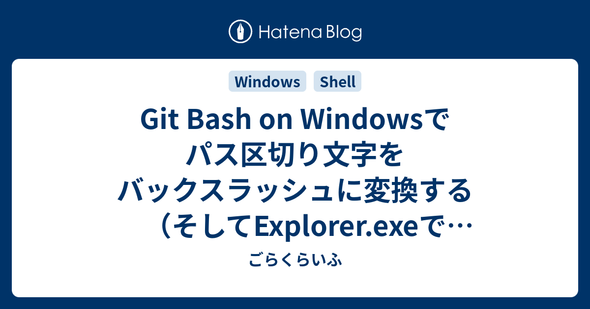 Git Bash On Windowsでパス区切り文字をバックスラッシュに変換する そしてexplorer Exeでカレントディレクトリを開く ごらくらいふ