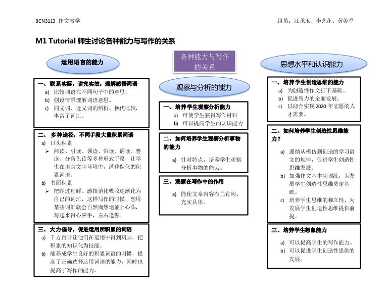 M1 Tutorial 师生讨论各种能力与写作的关系