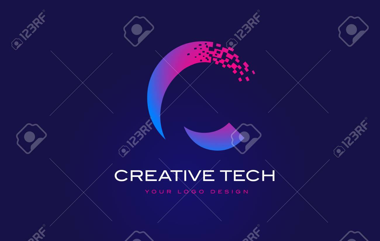 青と紫の色でデジタル ピクセルとロゴデザインの頭文字 C のイラスト素材 ベクタ Image 86913961