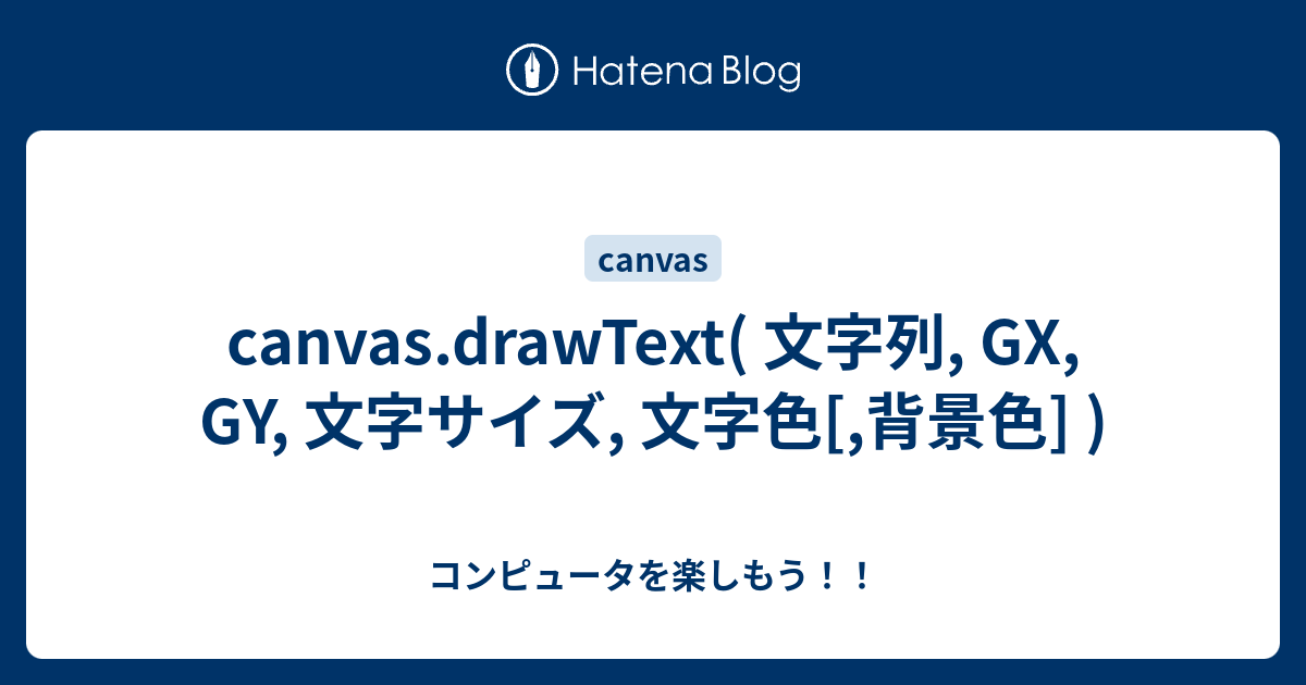 Canvas Drawtext 文字列 Gx Gy 文字サイズ 文字色 背景色 コンピュータを楽しもう
