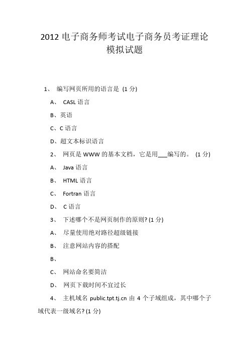 2010年电子商务员考试电子商务概论模拟试题及答案 百度文库