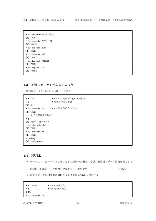 第2回 基本演算 データ型の基礎 ベクトルの操作方法