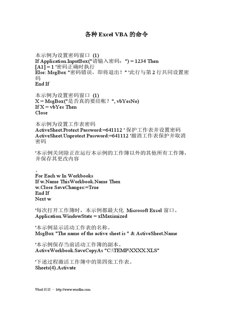 各种excel Vba的命令